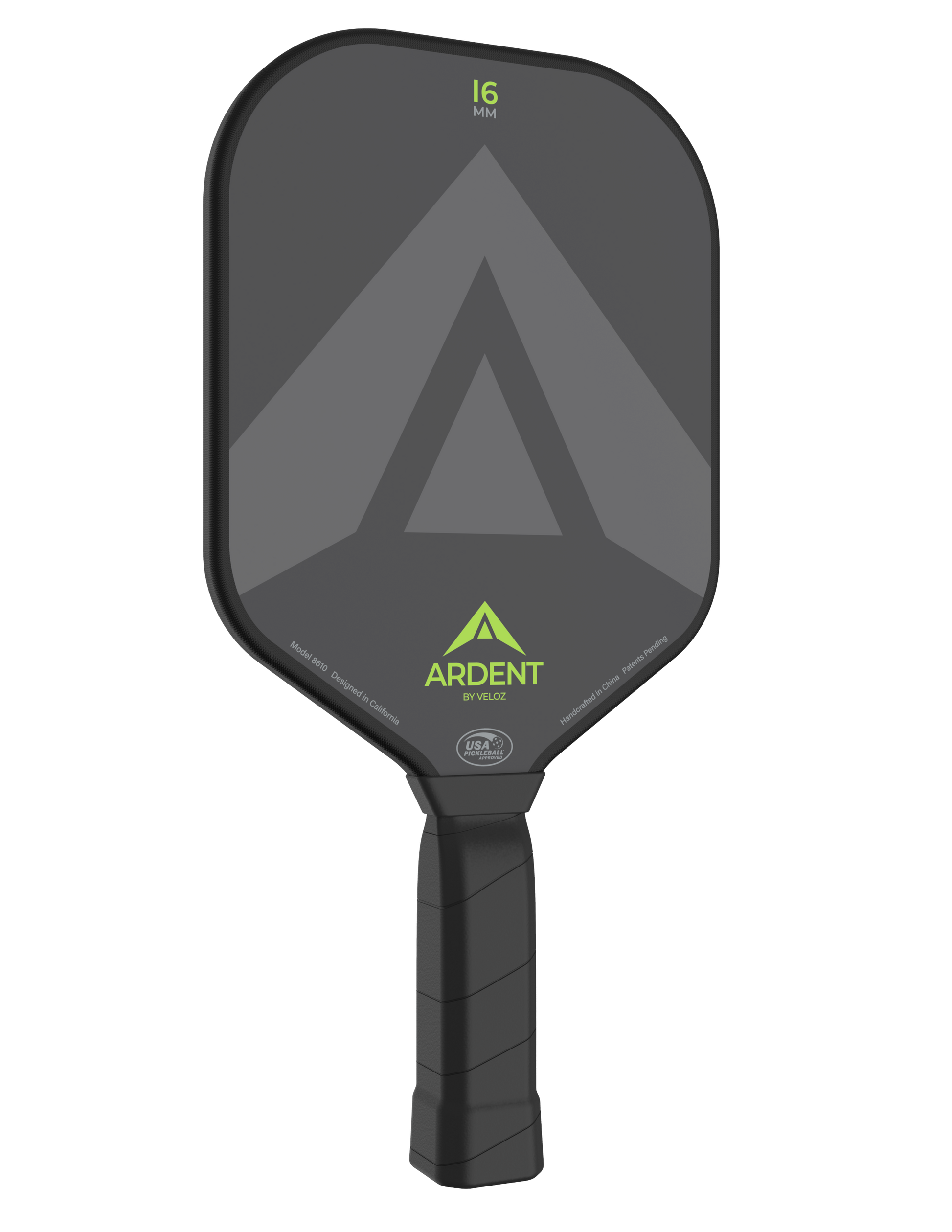 For passionate players interested in a performance paddle, Ardent is the optimal and affordable choice. Brought to you by Veloz, the same team that revolutionized wrapped carbon fiber technology, Ardent paddles are built for the player who's ready to advance to the next level. It features 3 durable layers of composite / carbon fiber to deliver a balance of power, touch and control found in few paddles. Ardent also offers a maximized textured surface for controlled spin. As a USAP approved paddle, sanctioned for tournament use, Ardent will deliver results at any level of play. Available in lightweight 13 MM thickness for power and speed, or 16 MM for more control and drive, it has every player covered. Add Veloz weighted or regular edge guards to improve overall head weight and protection.