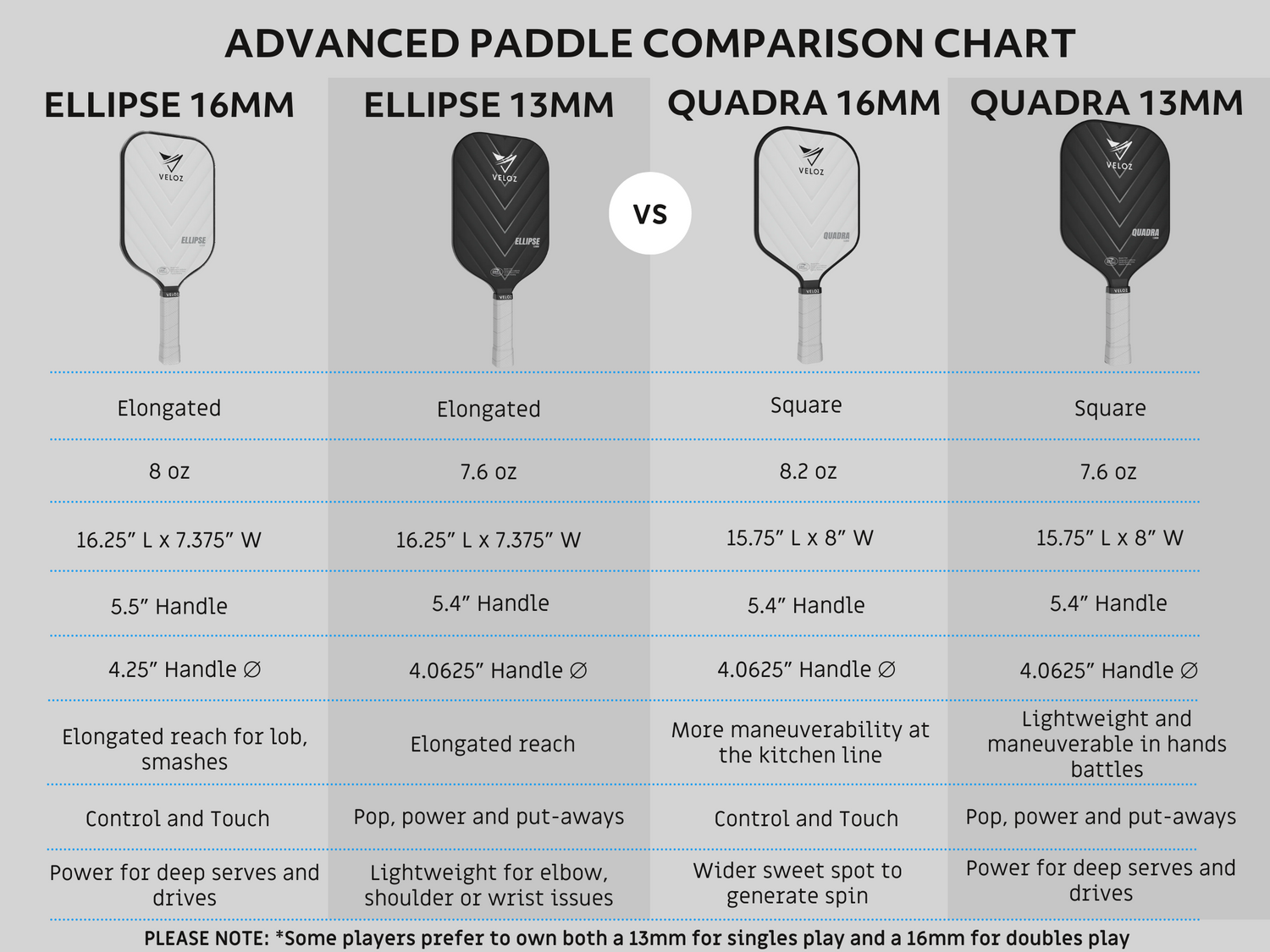 Veloz performance paddles are USA Pickleball-approved for sanctioned tournament play.